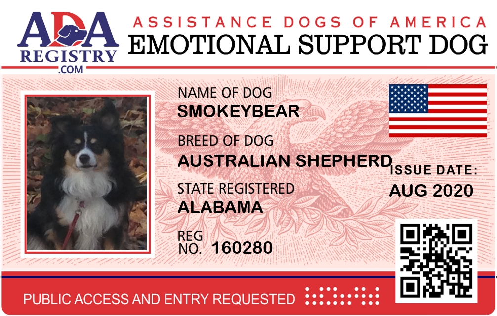 Emotional Support Dog Registration for SmokeyBear