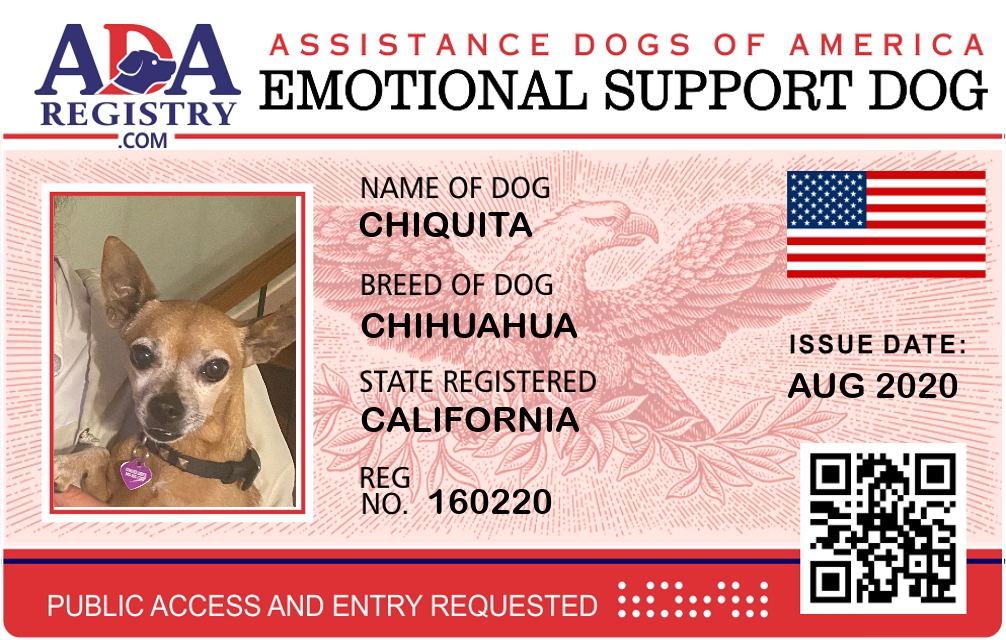 Emotional Support Dog Registration for CHIQUITA