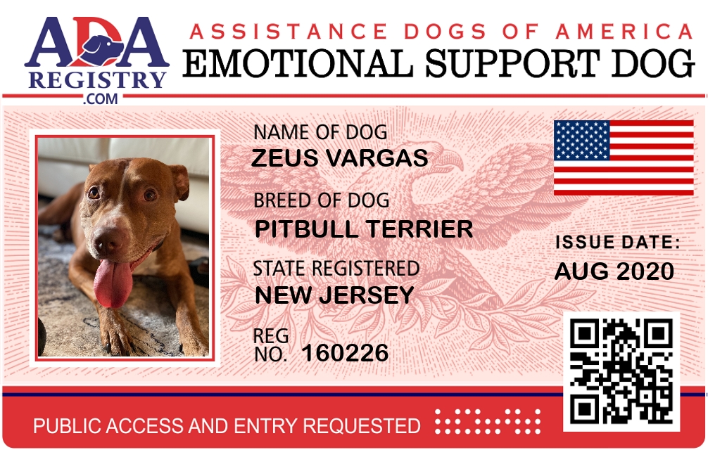 Emotional Support Dog Registration for Zeus Vargas