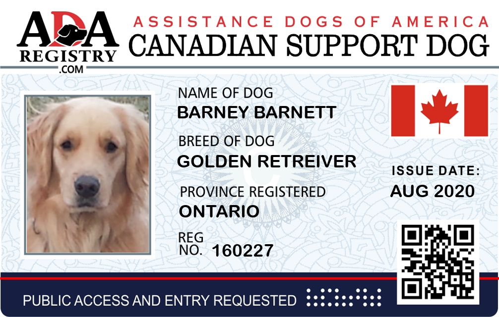 Emotional Support Dog Registration for Barney Barnett