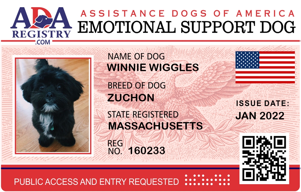 Emotional Support Dog Registration for Winnie Wiggles