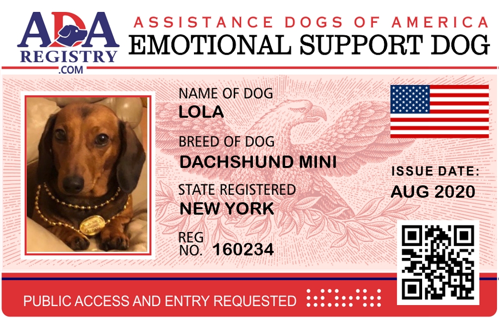 Emotional Support Dog Registration for Lola Loraine