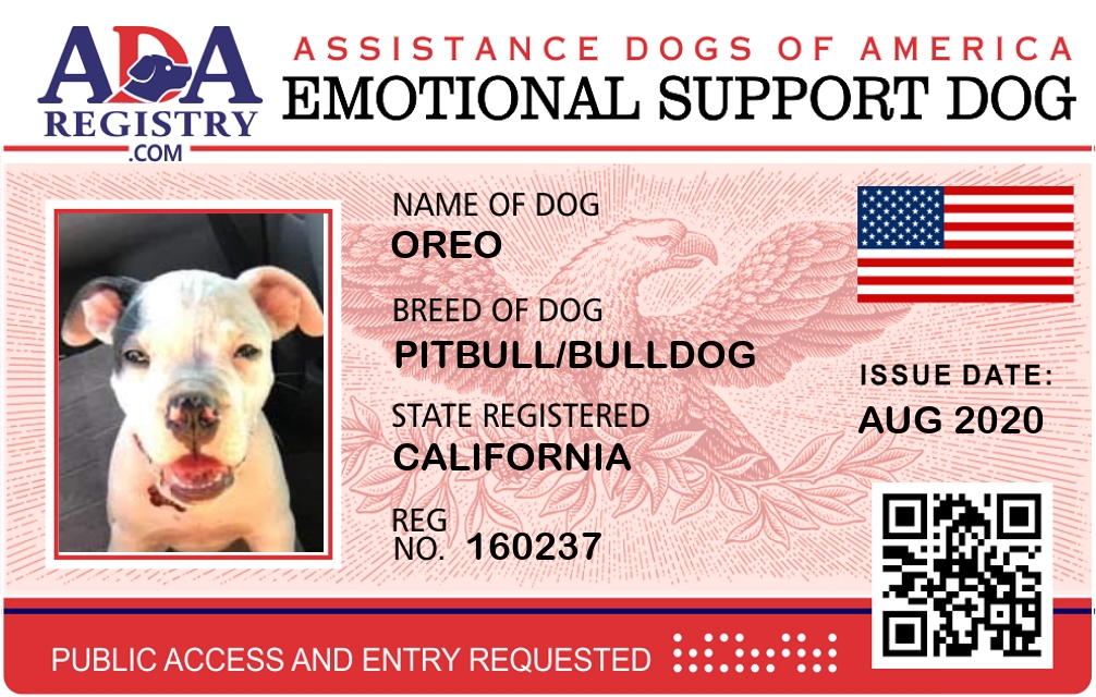 Emotional Support Dog Registration for Oreo