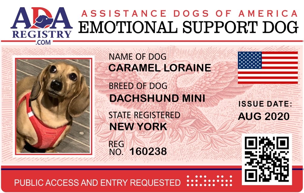 Emotional Support Dog Registration for Caramel Loraine