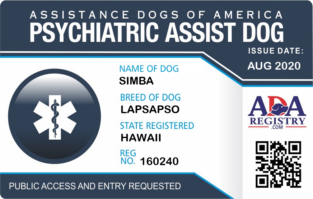 Psychiatric Service Dog Registration for Simba