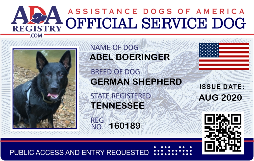 Service Dog Registration for Abel Boeringer