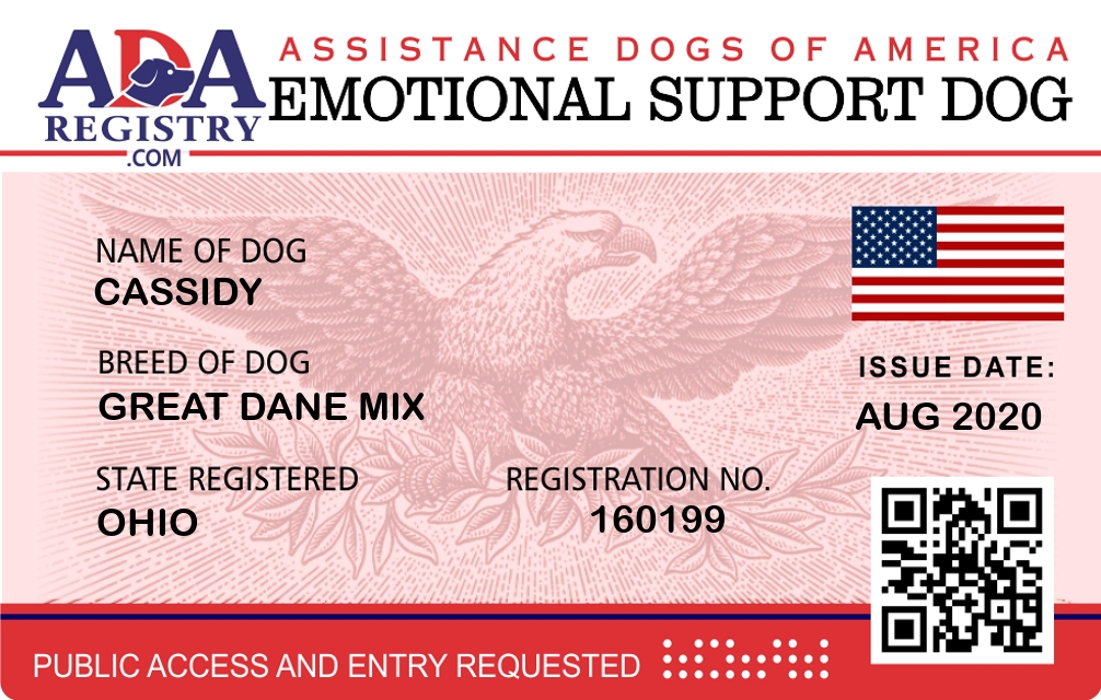 Emotional Support Dog Registration for cassidy