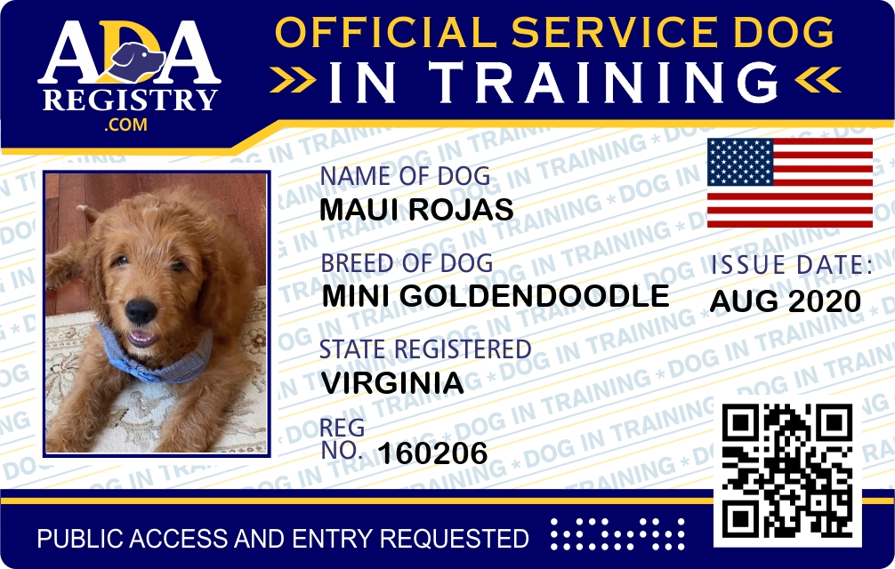 Service Dog In Training Registration for Maui Rojas