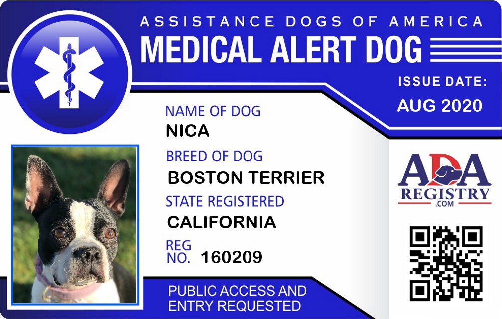Medical Alert Dog Registration for Nica