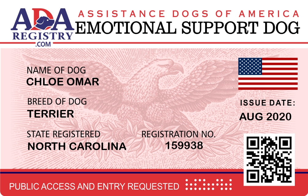 Emotional Support Dog Registration for Chloe Omar
