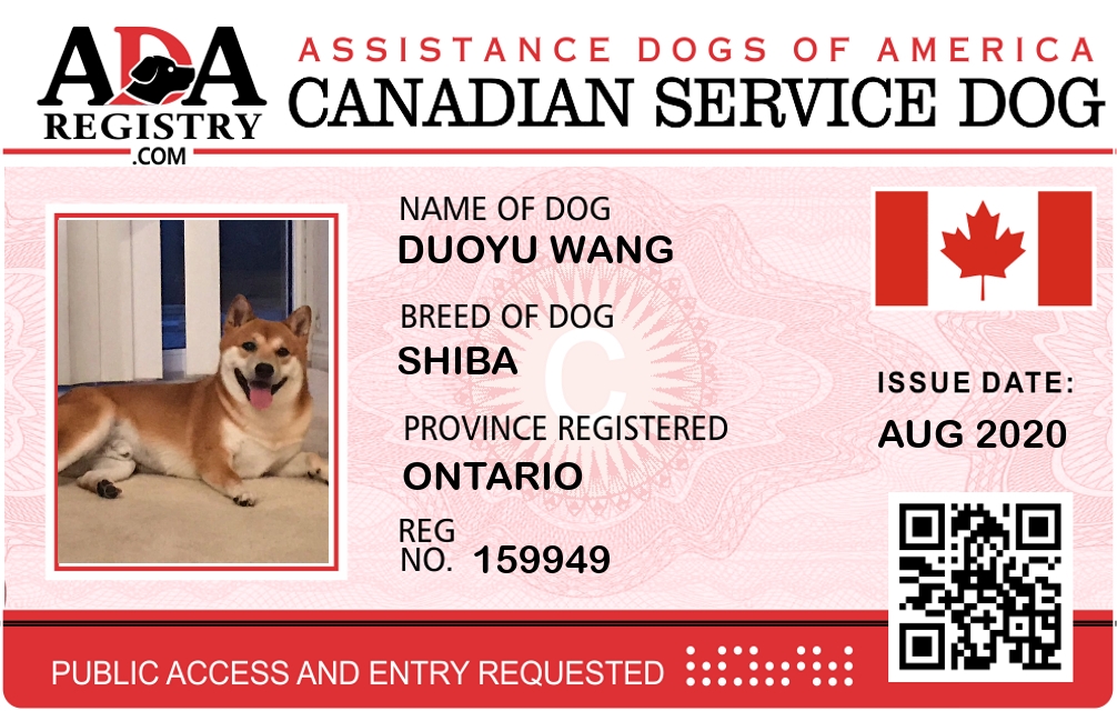Service Dog Registration for Duoyu Wang