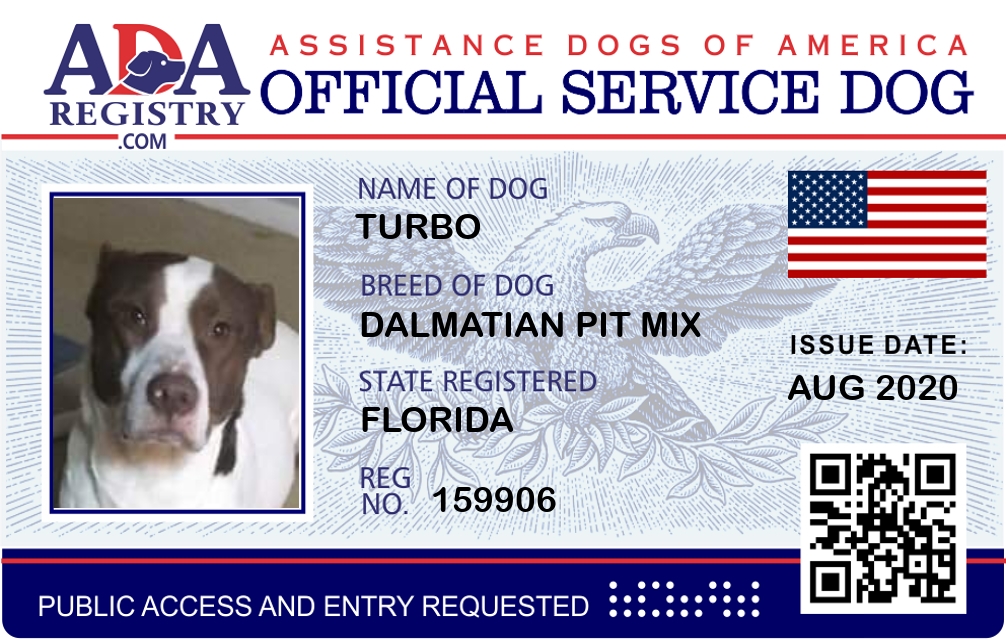 Service Dog Registration for Turbo