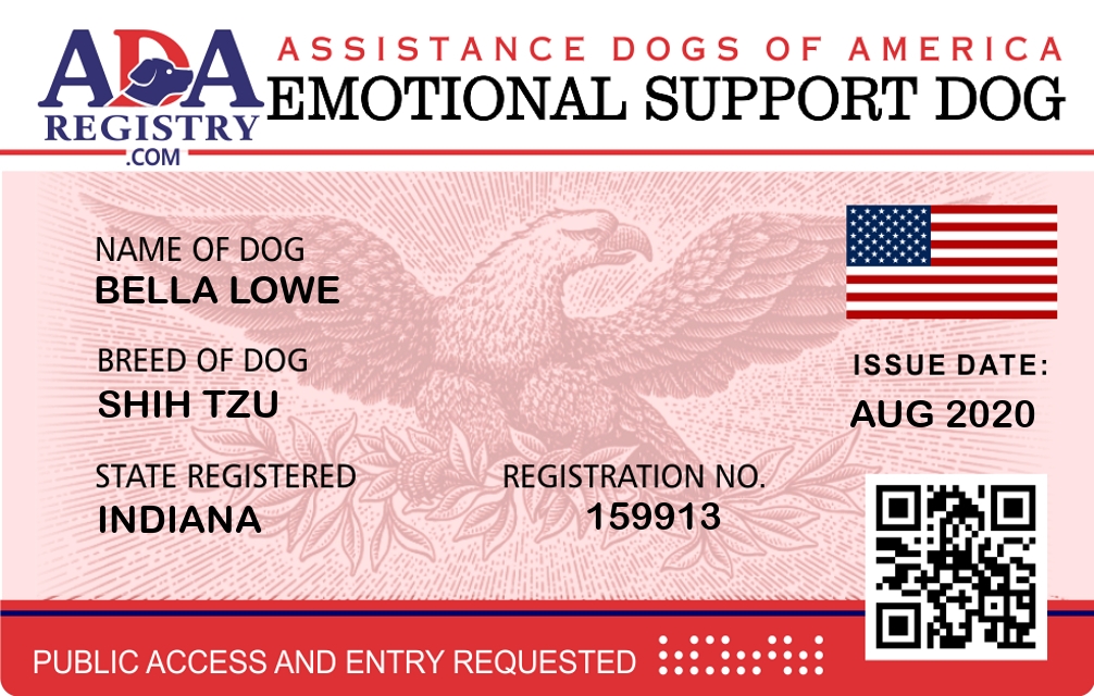 Emotional Support Dog Registration for Bella Lowe