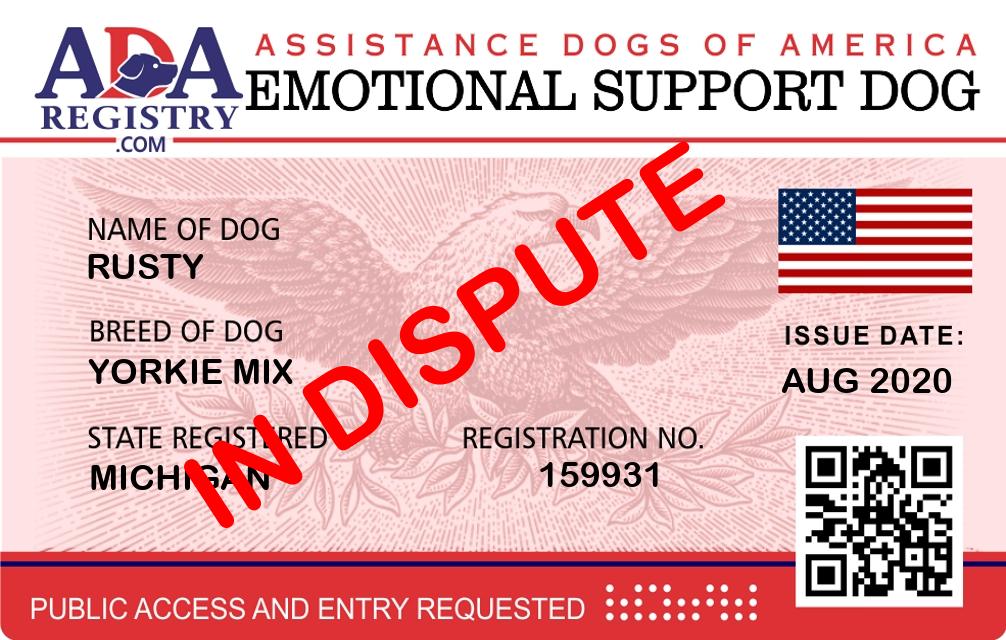 Emotional Support Dog Registration for Rusty
