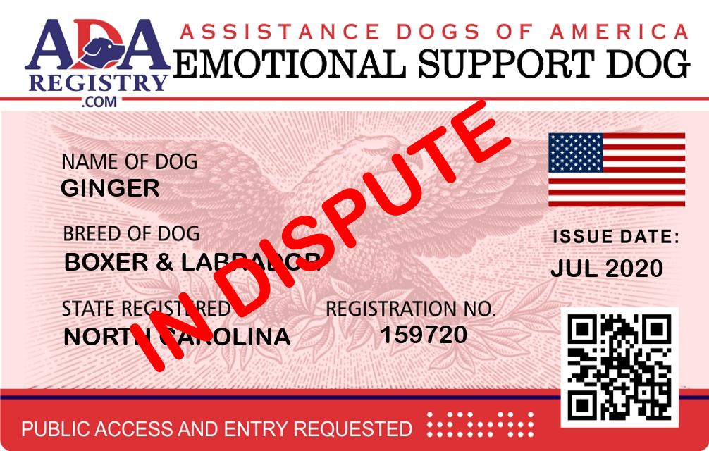 Emotional Support Dog Registration for Ginger
