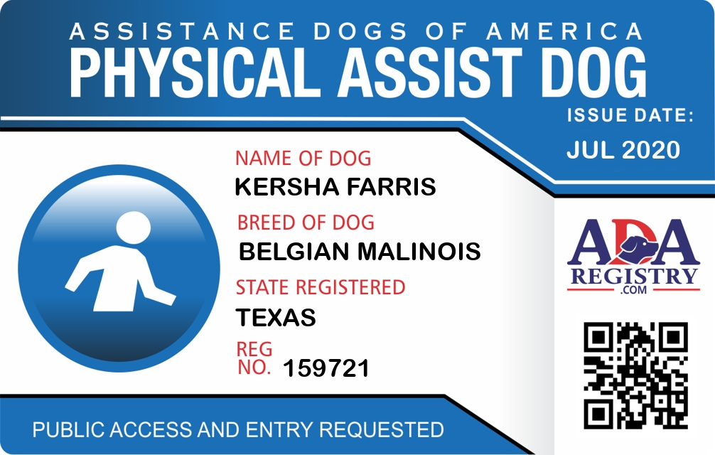 Physical Assistance Dog Registration for Kersha Farris