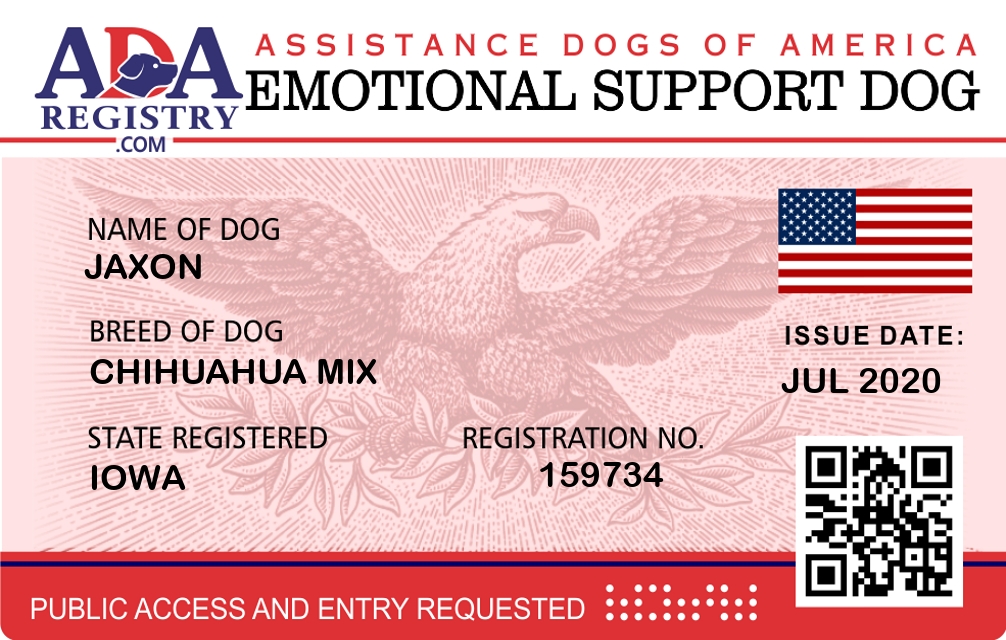 Emotional Support Dog Registration for Jaxon