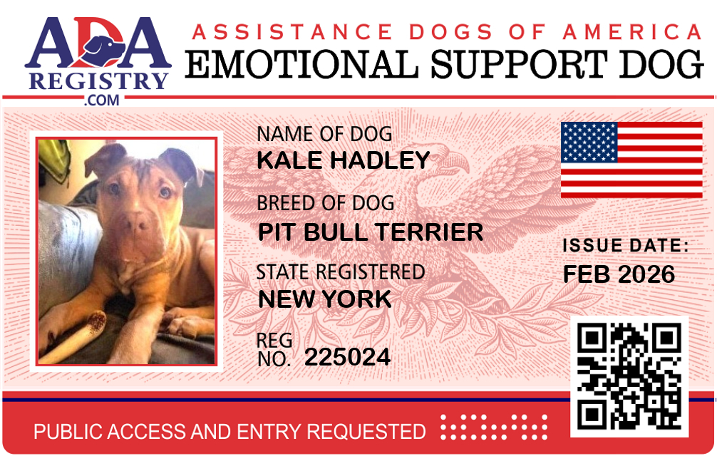 Emotional Support Dog Registration for Kale Hadley