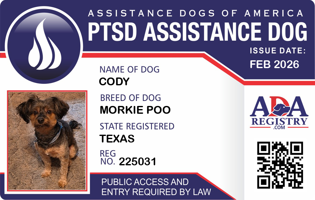 PTSD Assistance Dog Registration for Cody