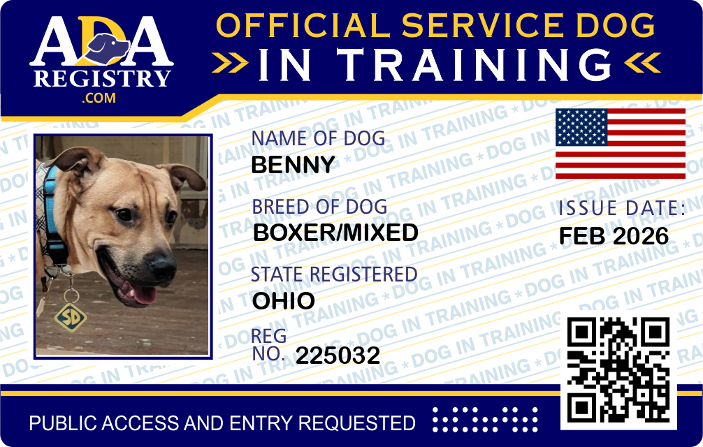 Service Dog In Training Registration for Benny