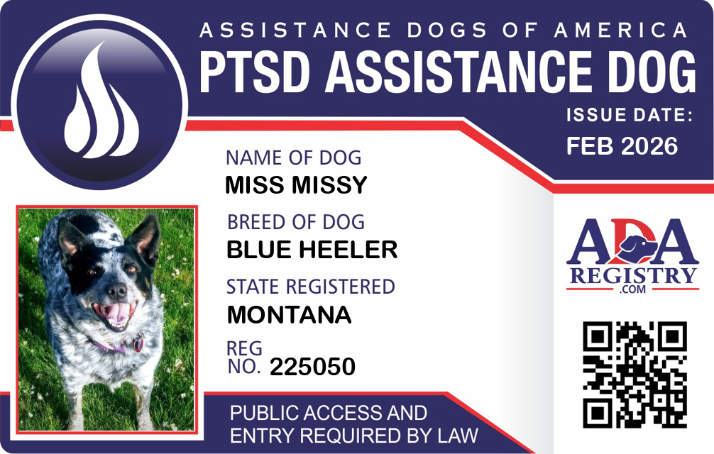 PTSD Assistance Dog Registration for Miss MISSY