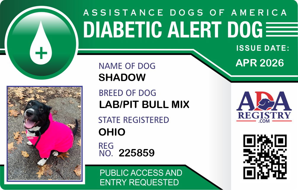 Diabetic Alert Dog Registration for Shadow