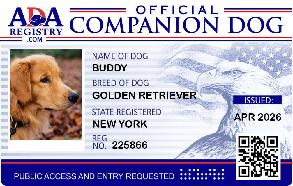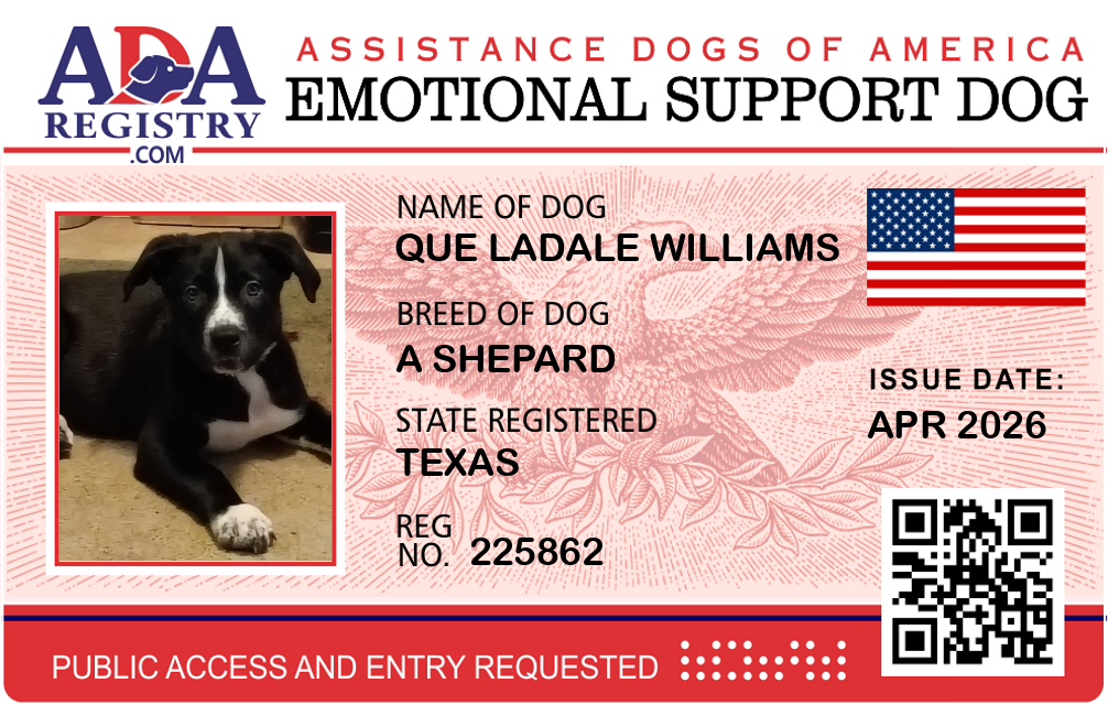 Emotional Support Dog Registration for Que LaDale Williams