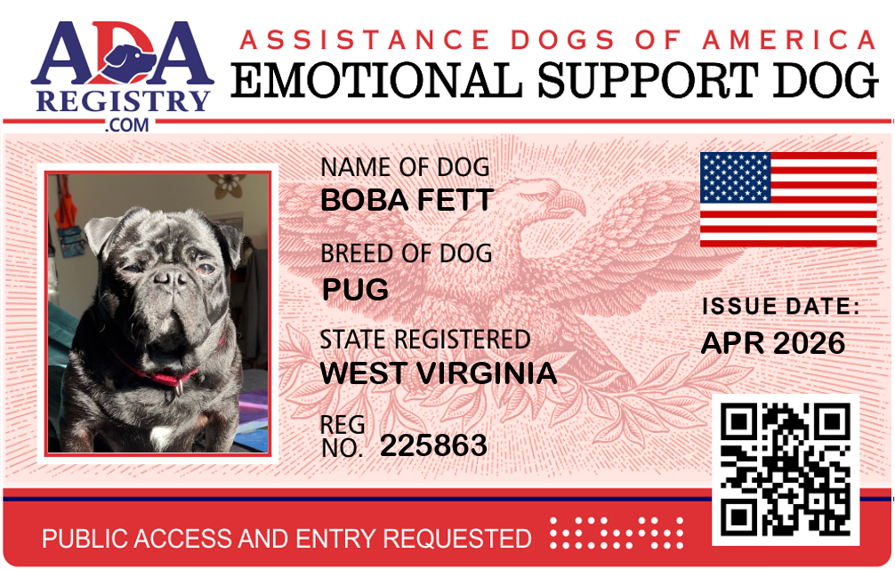 Emotional Support Dog Registration for Boba Fett