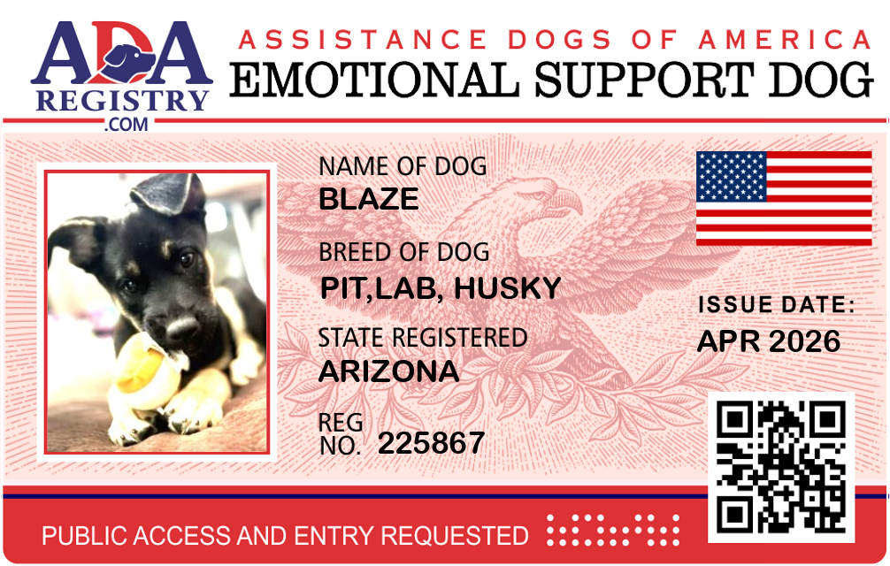 Emotional Support Dog Registration for Blaze