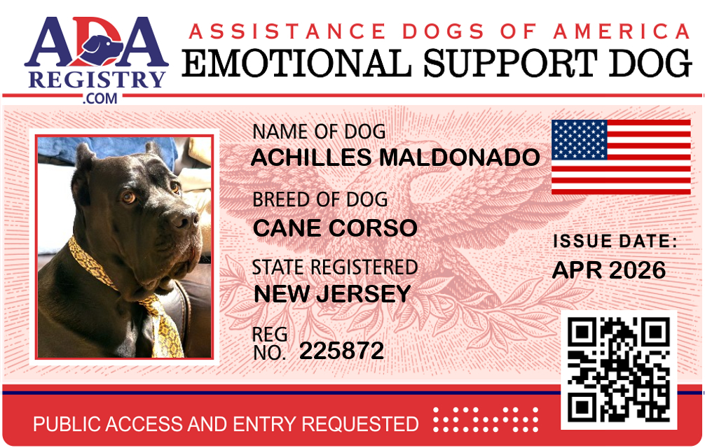 Emotional Support Dog Registration for Achilles Maldonado