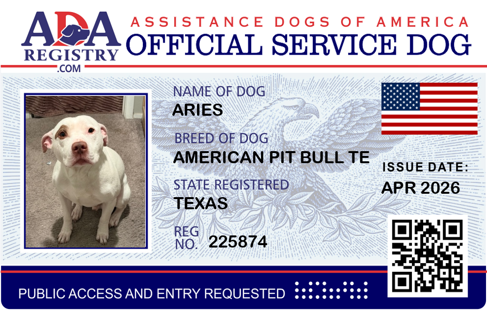Service Dog Registration for Aries