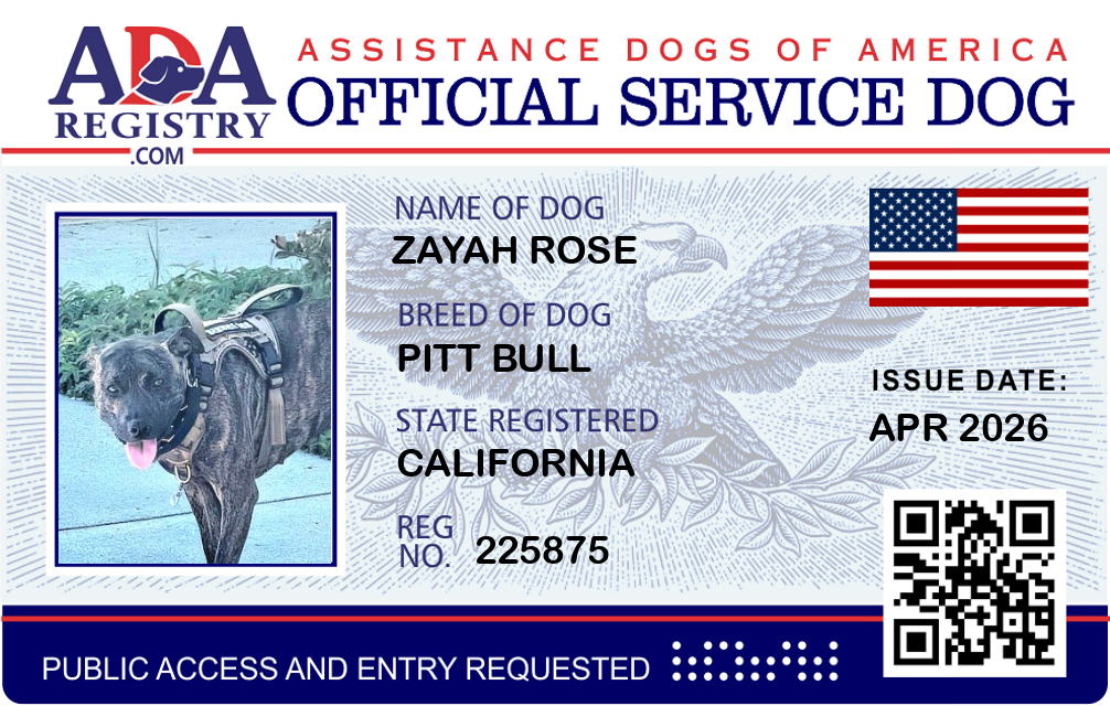 Service Dog Registration for Zayah Rose