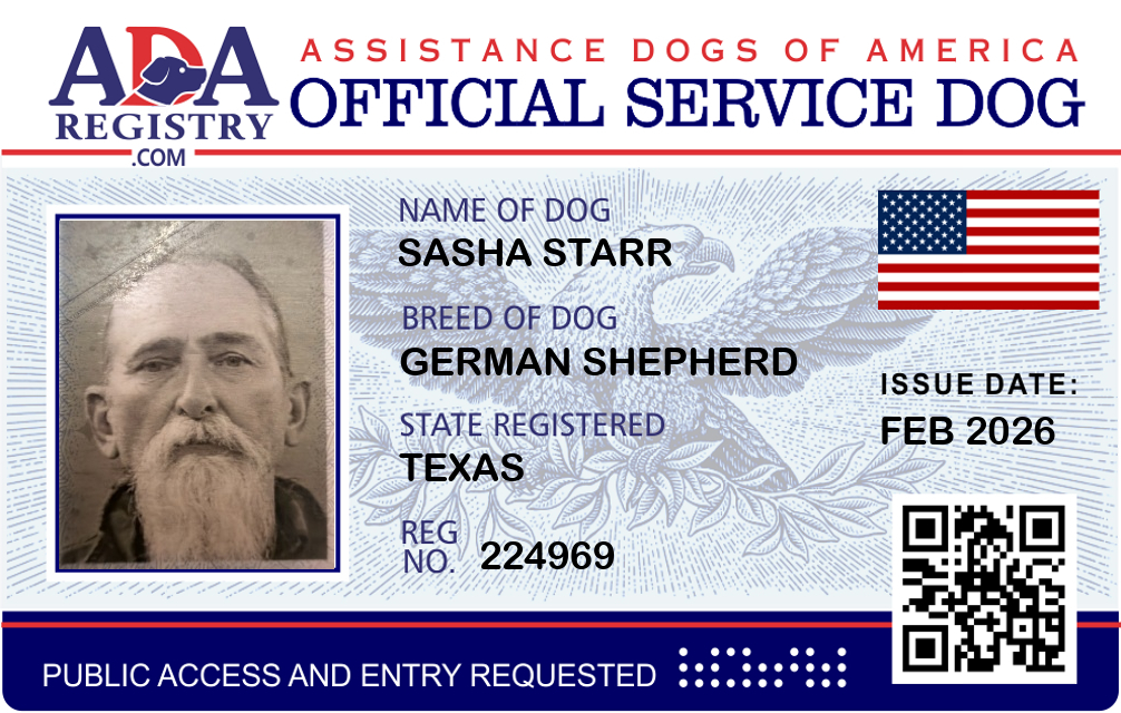 Service Dog Registration for Sasha Starr