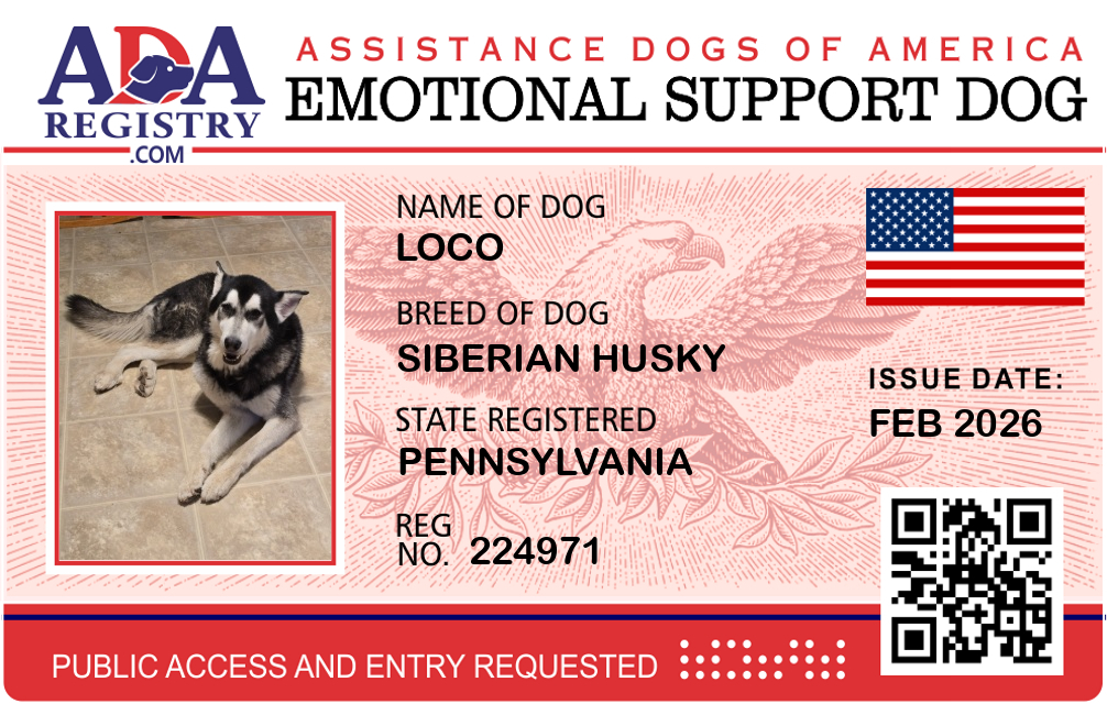 Emotional Support Dog Registration for Loco