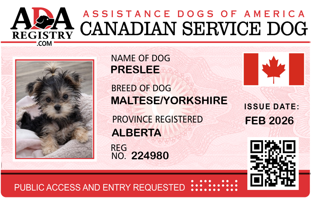 Service Dog Registration for Preslee