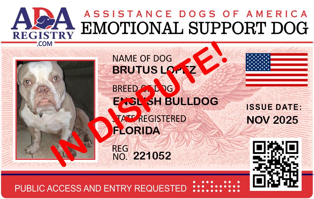 Emotional Support Dog Registration for Brutus Lopez