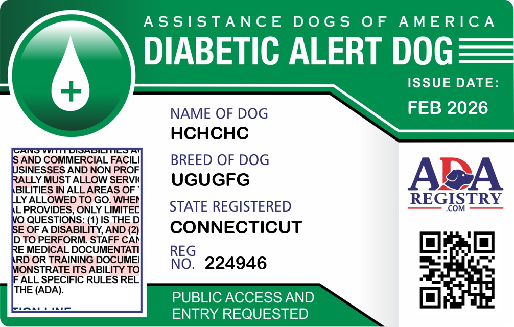 Diabetic Alert Dog Registration for Sheldon Pooper