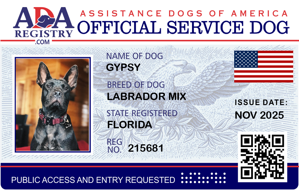 Emotional Support Dog Registration for Ellie (Esmaralda)