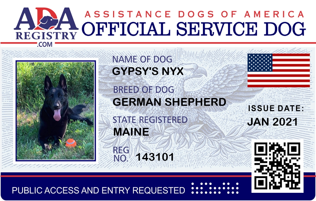 Service Dog Registration for Gypsy's Nyx