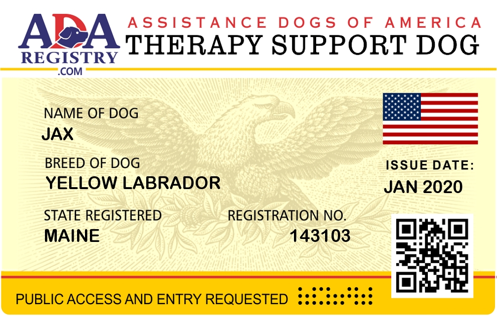 Emotional Support Dog Registration for Jaxson