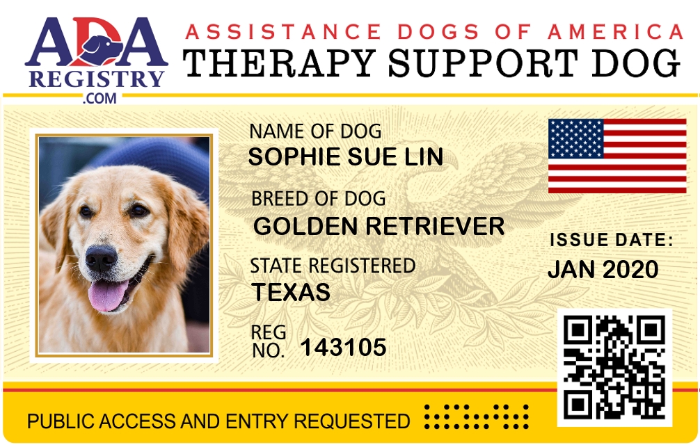 Therapy Dog Registration for Sophie Sue Lin