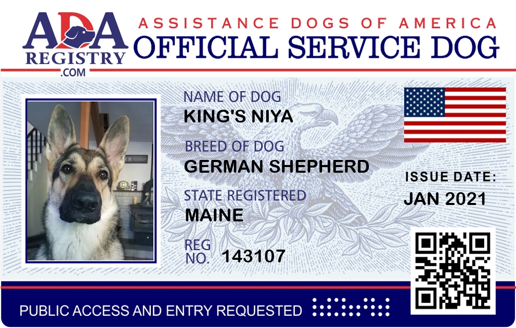 Service Dog Registration for King's Niya
