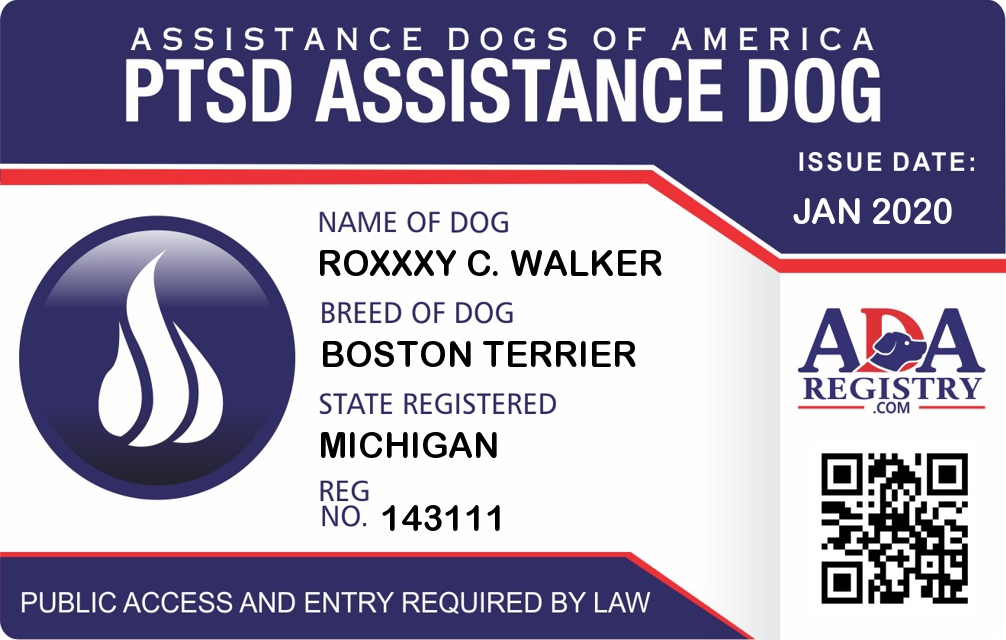 PTSD Assistance Dog Registration for Roxxxy C. Walker