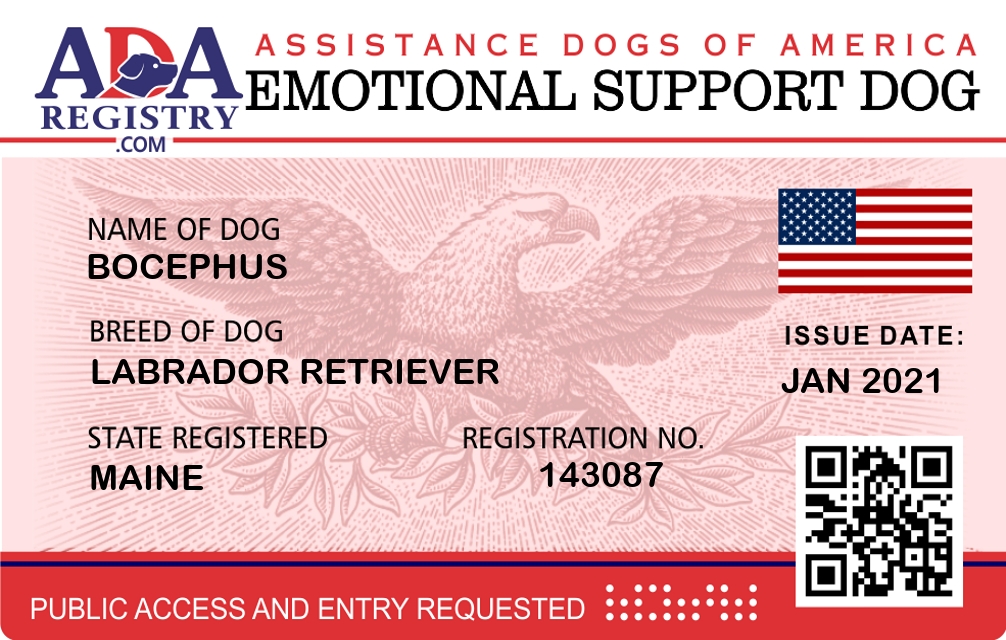 Emotional Support Dog Registration for BOCEPHUS