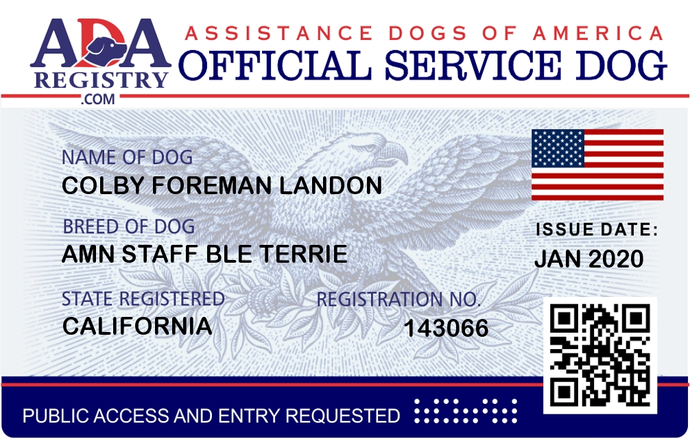Service Dog Registration for COLBY FOREMAN LANDON