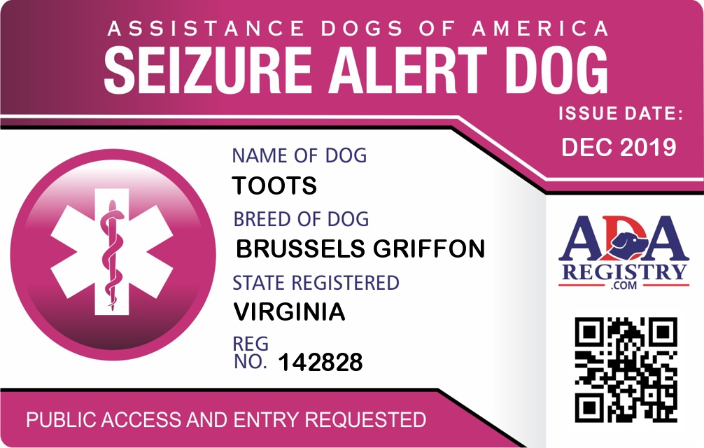 Seizure Assistance Dog Registration for Toots