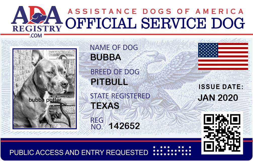 Service Dog Registration for Bubba