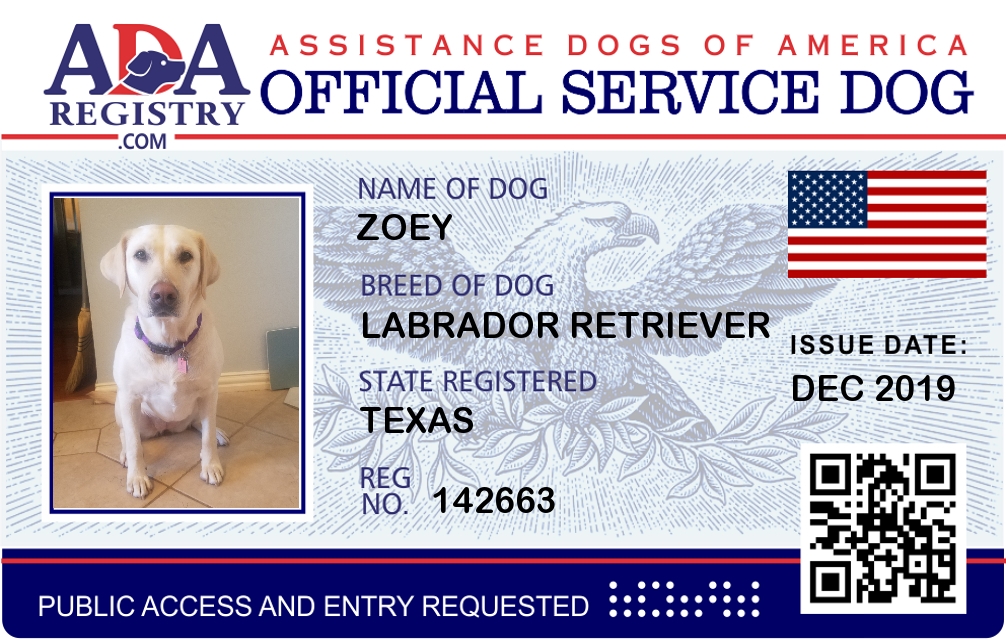 Service Dog Registration for Zoey