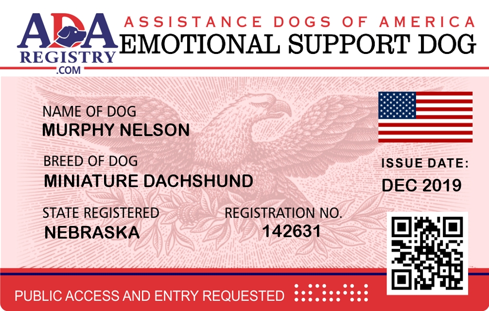 Emotional Support Dog Registration for Murphy Nelson