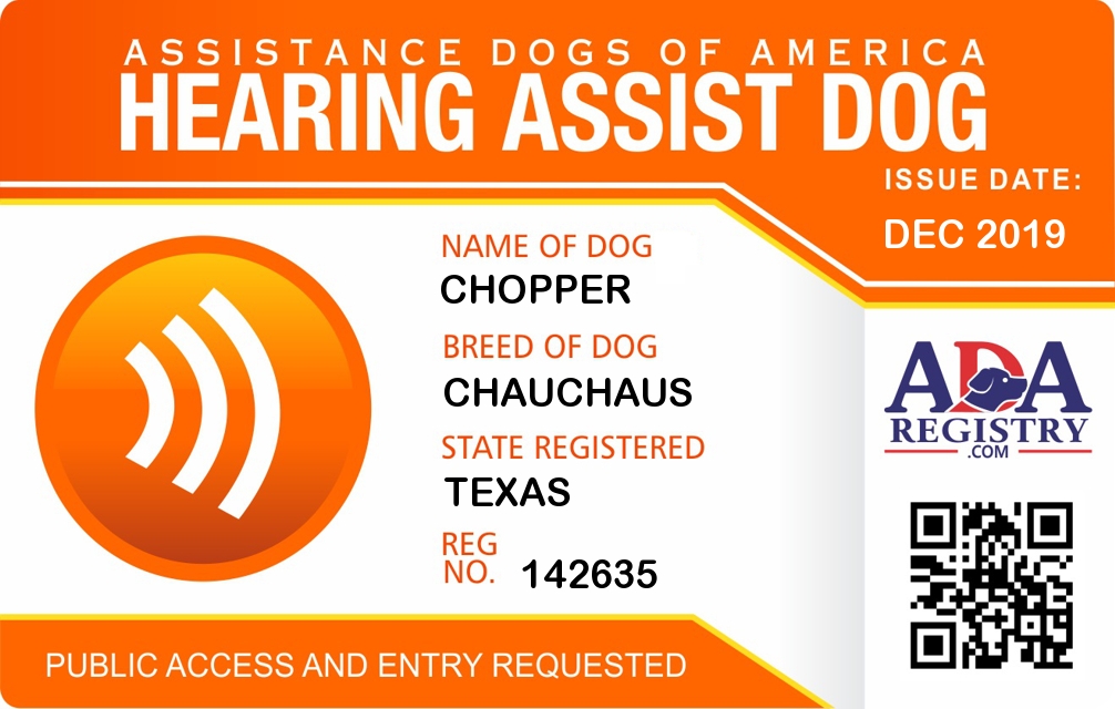 Hearing Assistance Dog Registration for Chopper